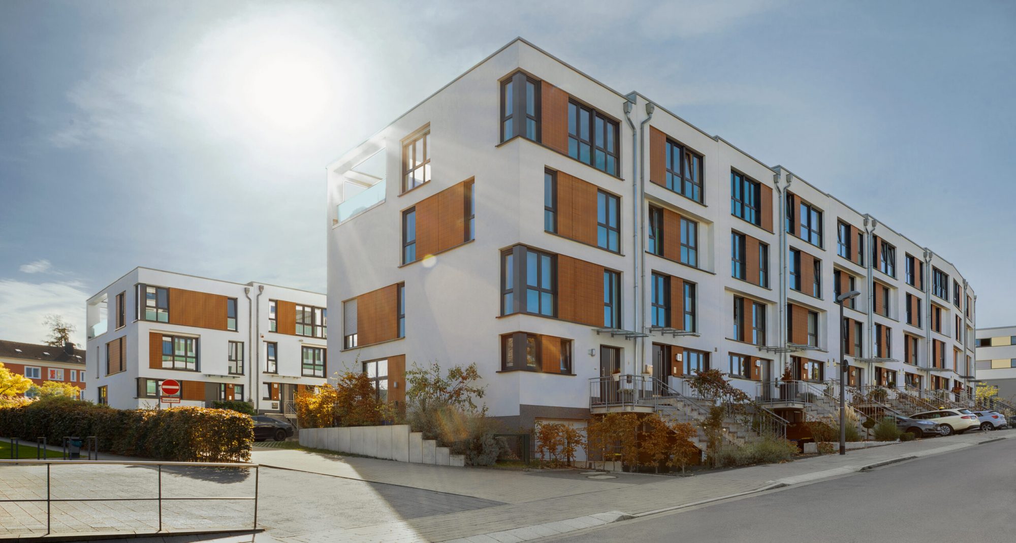 Neunzehn 3-4 geschossige Stadthäuser mit Garagen im Untergeschoss und Erdwärmeheizung